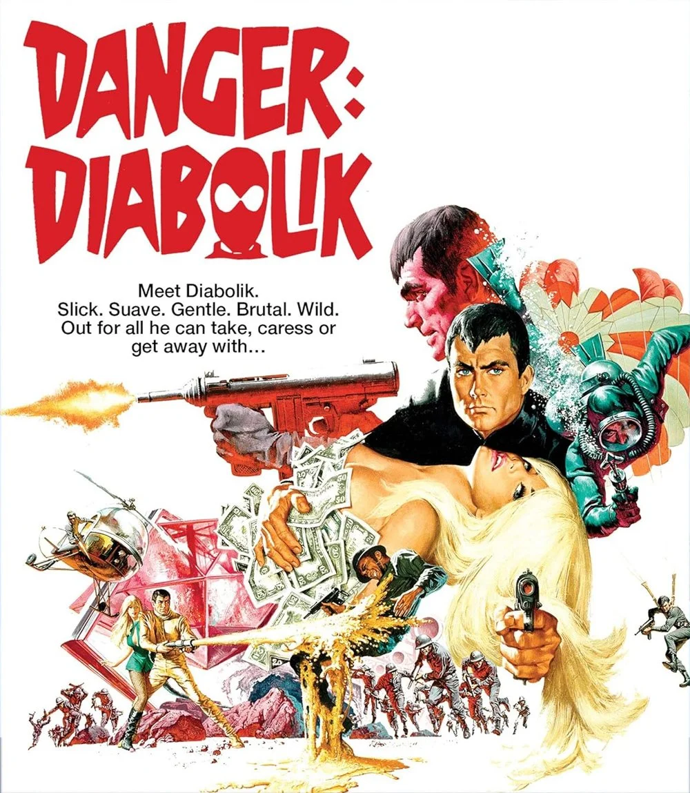 Danger: Diabolik (1968) synopsis: “A master thief and his sensual lover pull off heist after heist, all while an envious coalition of cops and gangsters is gunning for them.”